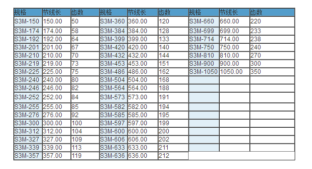 同步帶技術(shù)參數(shù)